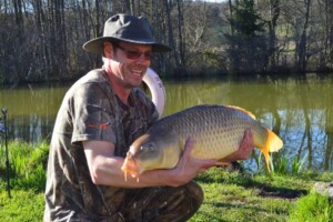 The lake is nestled in the large gardens of La Chatouillette. It is for the exclusive use of our guests. This ensures your privacy. The lake is ideal for up to 4 anglers. The size of the lake is approximately 3 acres and is surrounded by mature gardens, woodland and meadows. Some shrubs overhang the lake providing shade for the carp .